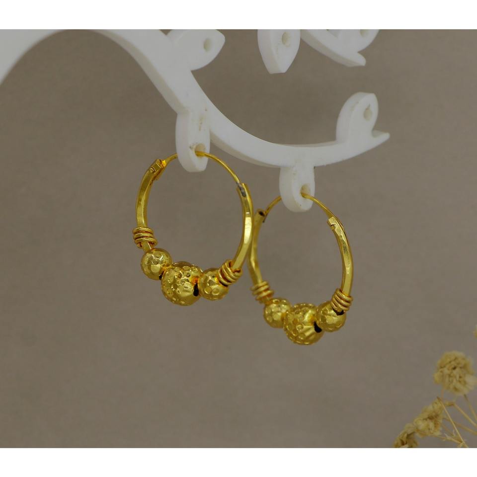 Handmade 24K Gold Plated Multi-Bead Dangle Hoop Earrings Indian Bali Ethnic Festival Bridal Jewelry for Women Girls Alloy Bali