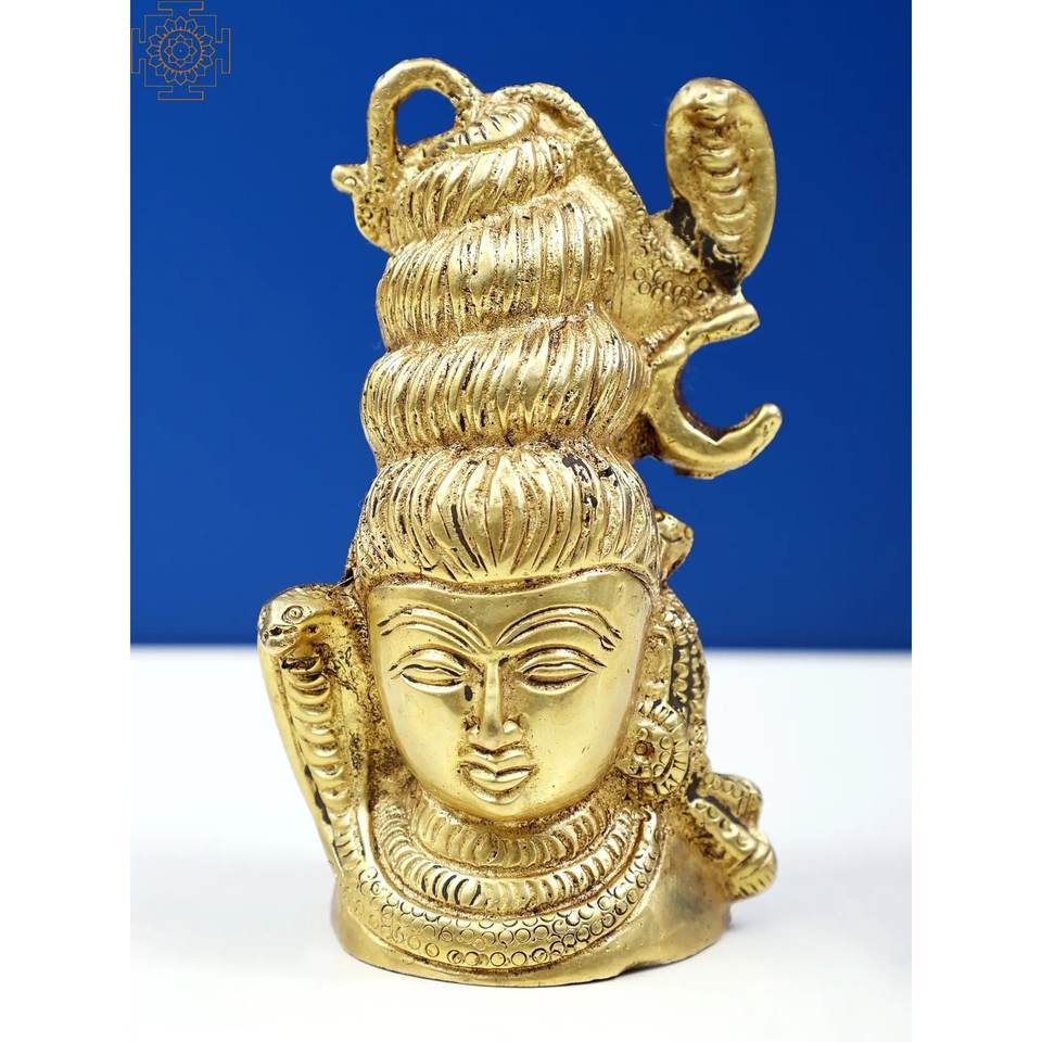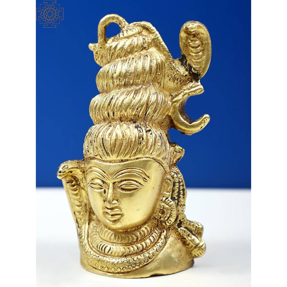 Handmade 3-Inch Small Lord Shiva Head Sculpture Brass Item Made in India