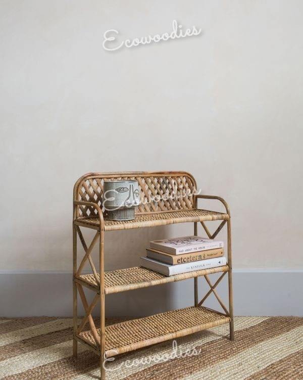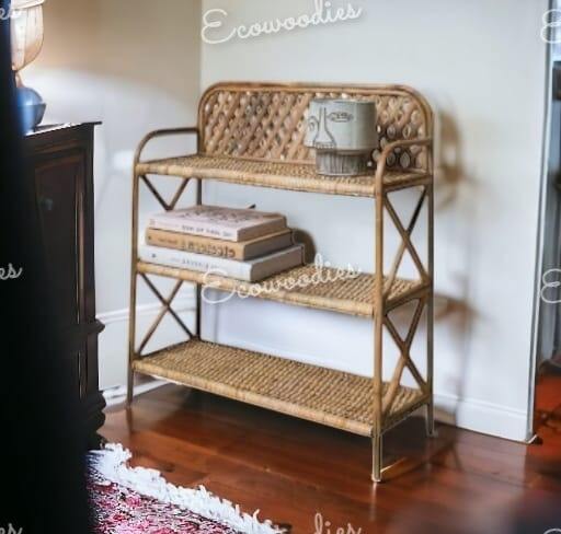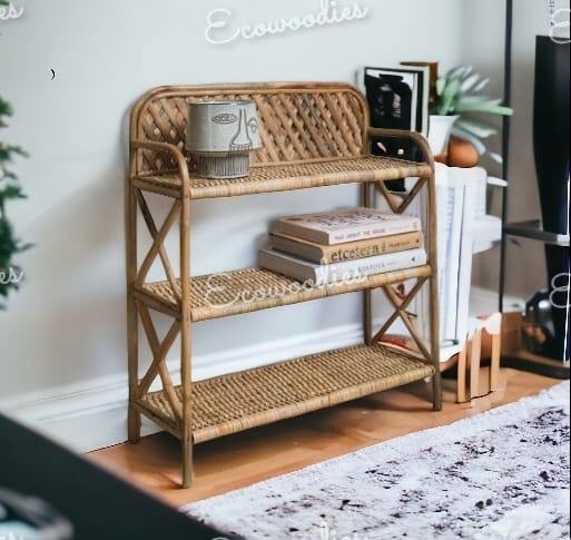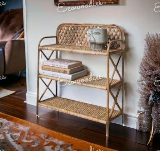 Handmade 3 Tiers Rattan Storage Rack Bookshelf Home Decor Furniture Living Room Display Wicker Rack for Home Furniture and Decor