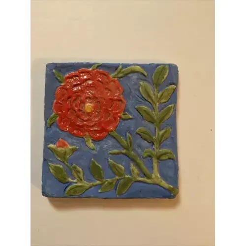 Handmade 4\" Porcelain Flower Art Tile Indoor Outdoor Decorative Trivet Tile Accessories
