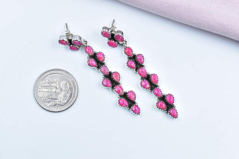Handmade 4-Tier Post Stud Sterling Silver Earrings Sparkling Opal Long Dangle Drop for Women for Wedding and Party