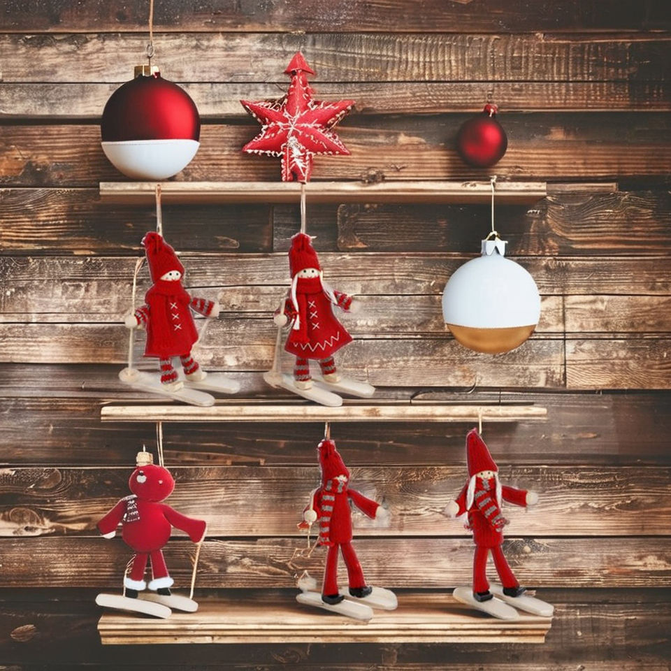 Handmade 4pcs wood gnome ornaments Cute Doll Knitted Wool Felt Tree Hanging Decorations