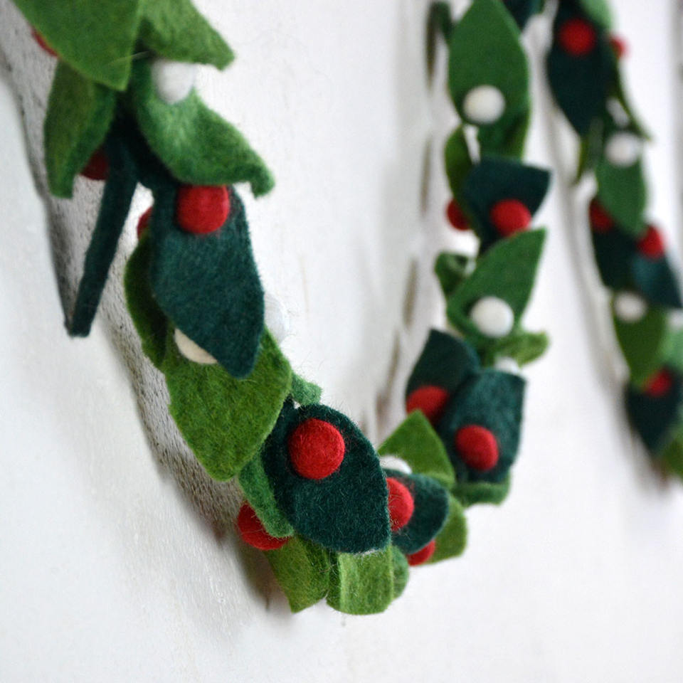 Handmade 5.5 Ft Green Felt Leaf Garlands Add a Touch of Festivity to Your Christmas Decorations