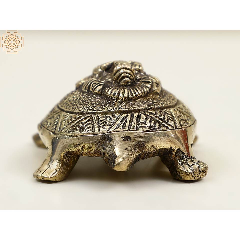 5 Inch Handmade Brass Vastu Tortoise with Ganesha on Top Small Home Decor Item and Gifting Made in India