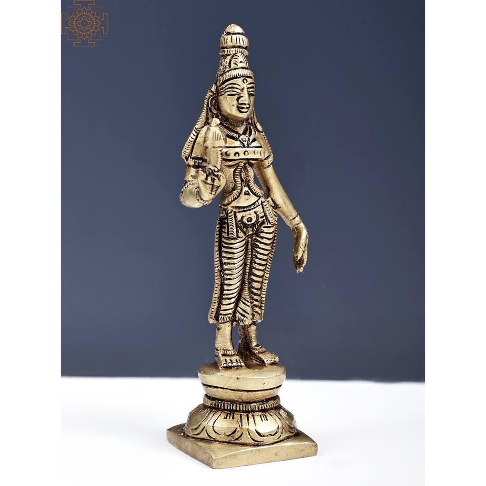 Handmade 5 Inches Standing Devi Uma Sculpture Devi Parvati Brass Idol Made in India