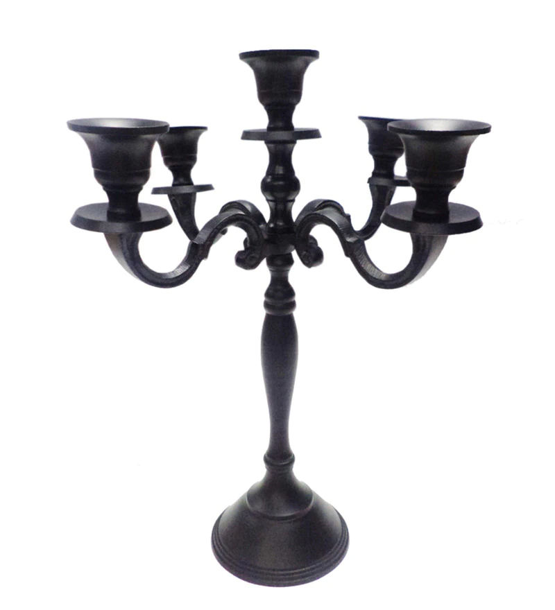 Handmade 5-Light Black Metal Candelabra Christmas Table Candlestick Holder for Home Wedding Tall Iron Aluminium Steel Tall Shape