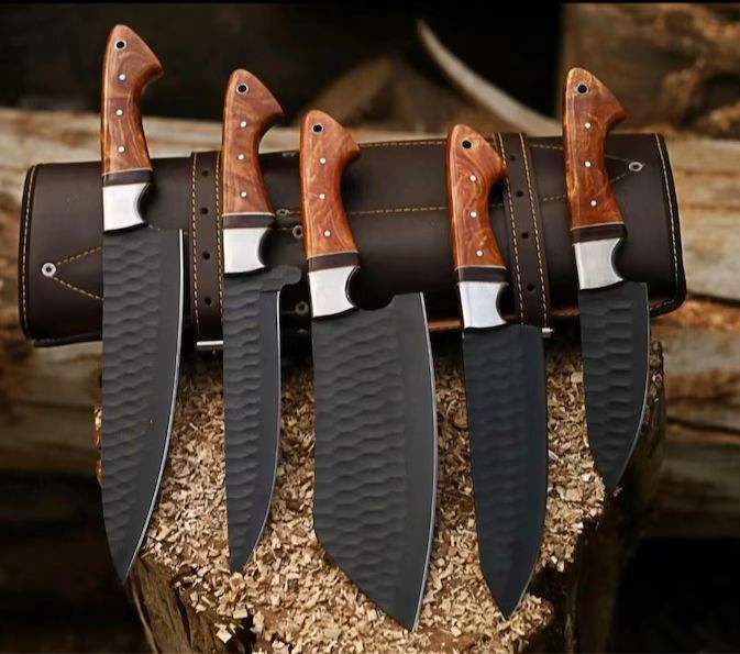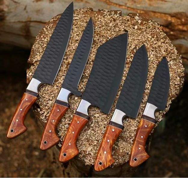 Handmade 5 Pieces High Carbon Steel Kitchen Knife Set Utility Chef Kitchen Wholesale Forged with Wooden Handle Restaurant OEM
