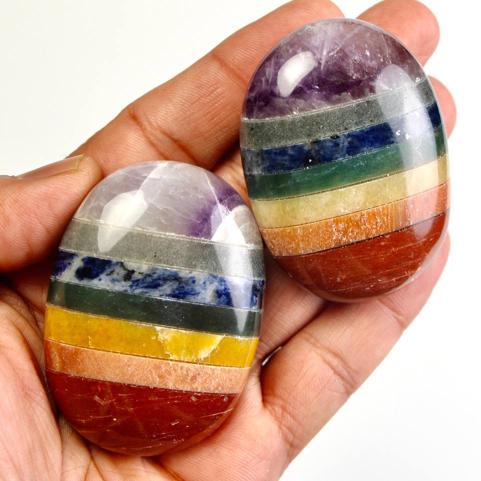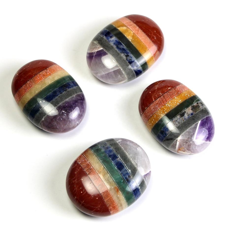 Handmade 7 Chakra Palm Stone Natural Smooth Healing Crystal 4cm 3cm Oval Pocket Polished with Love & Mascot Theme Cheap