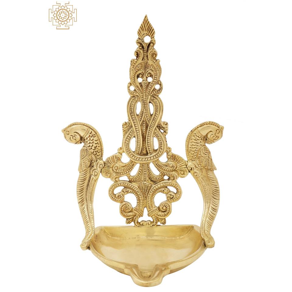 Handmade 8-Inch Superfine Brass Oil Lamp with Parrot Wick for Gifting Made in India