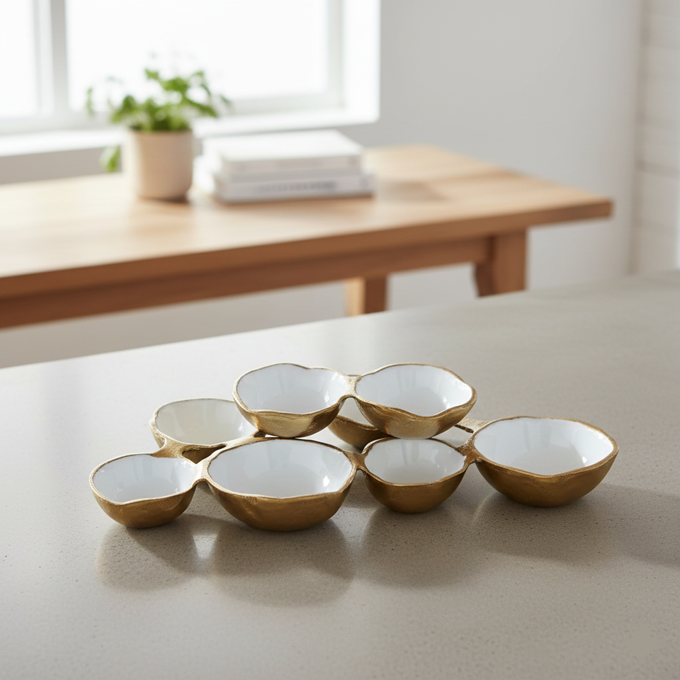 Handmade Customized 9-Bowls Cluster Serving Dish Set Black Wedding Tableware Aluminum Compartment Bowls Eco-Friendly Modern