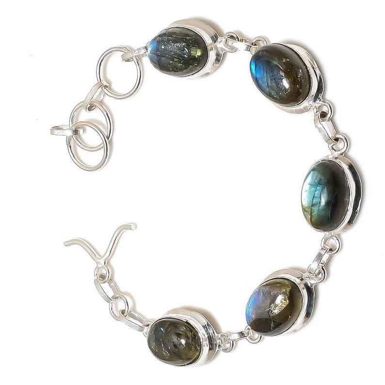 Handmade 925 Silver Adjustable Luxury Charm Bracelet Labradorite Gemstone Bezel Setting Men/Women Party Gift Birthstone Jewelry