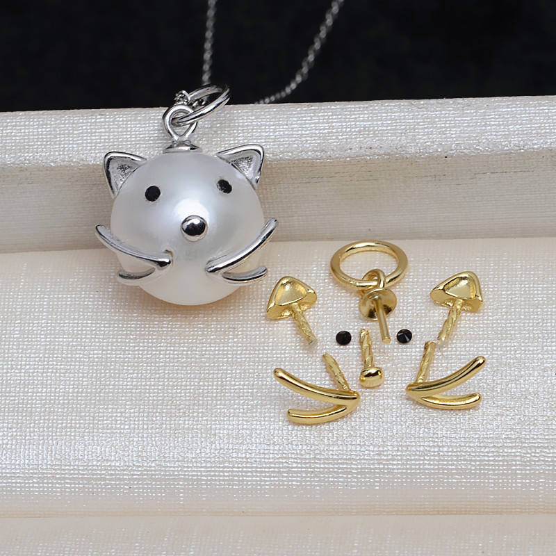 Handmade 925 Silver Baroque Cat Pendant and Special-Shaped Pearl Necklace DIY Female Pearl Empty Holder Accessory 4020