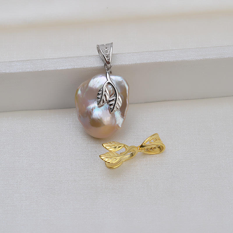 Handmade 925 Silver Baroque Pearl Pendant Necklace for Women Exotic Leaf-Shaped Hollow Base Accessory DIY Jewelry Component