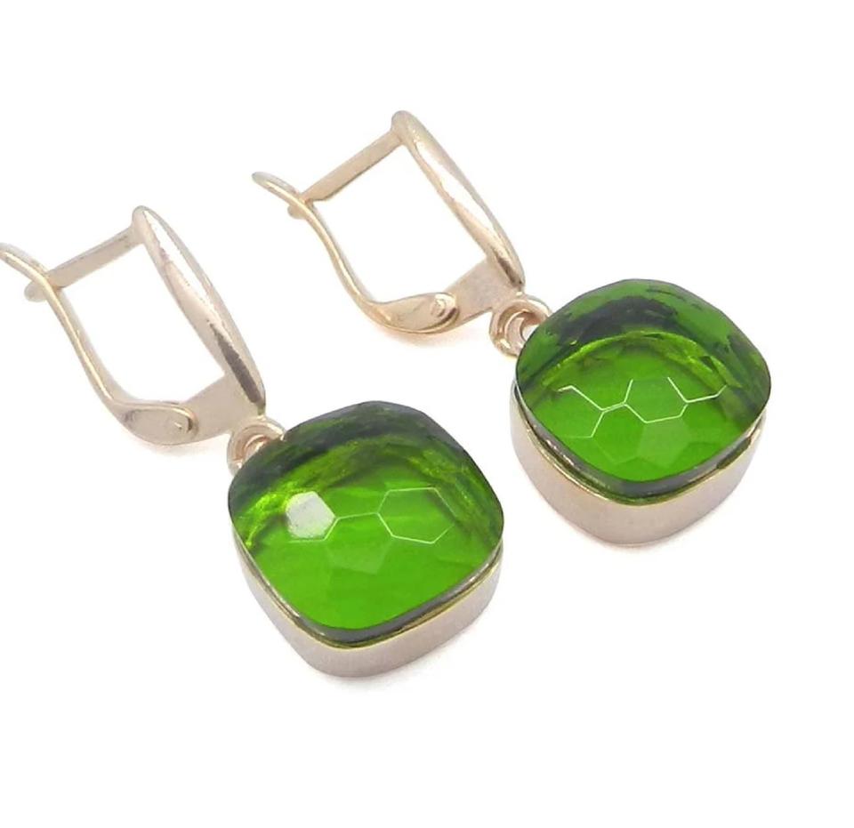 Handmade 925 Silver Cushion Cut Stone Drop & Dangle Birthstone Green Studs Hydro Peridot Gemstone Earlobe Earrings Jewelry