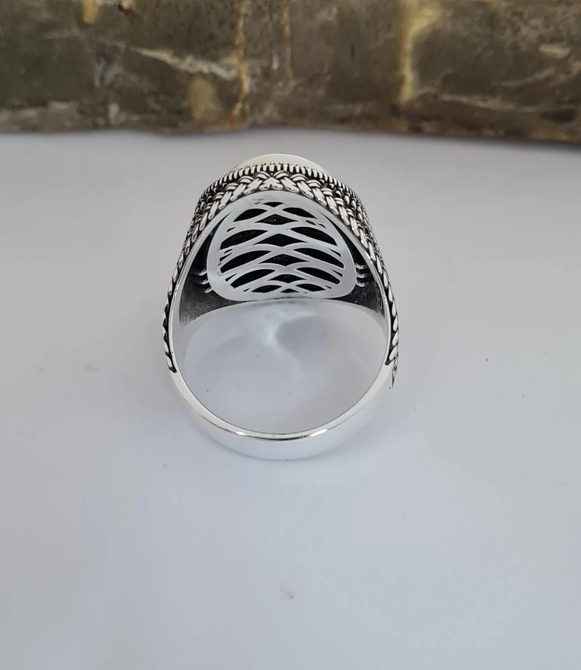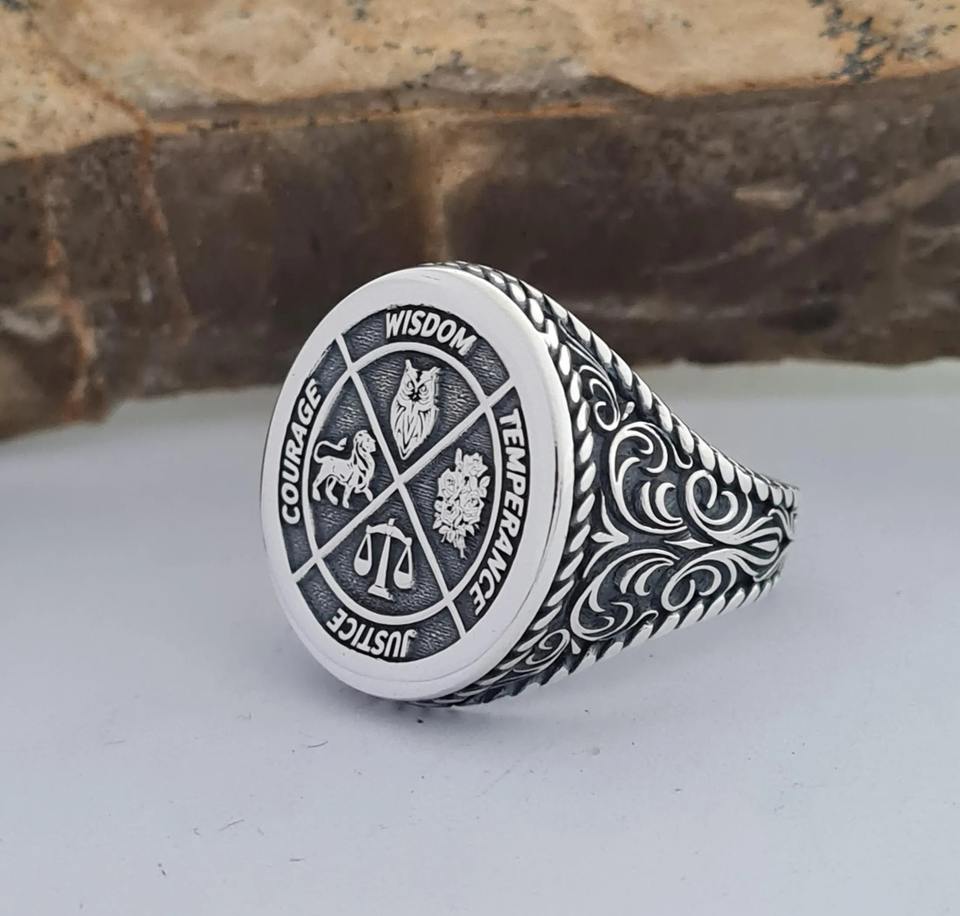 Handmade 925 Solid Silver Vintage Personalized Signet Men's Ring Masonic Style 16mm Invisible Setting Symbols Wisdom Justice