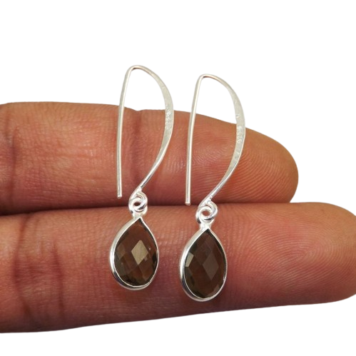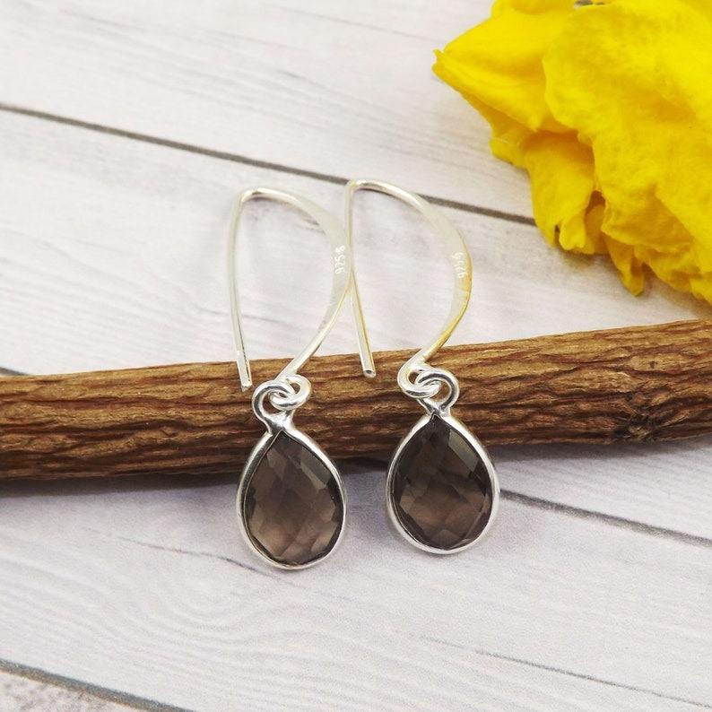Handmade 925 Solid Sterling Silver Dangle Earrings Simple Smoky Quartz Gemstone Best Fashion Jewellery for Women's Party Wedding