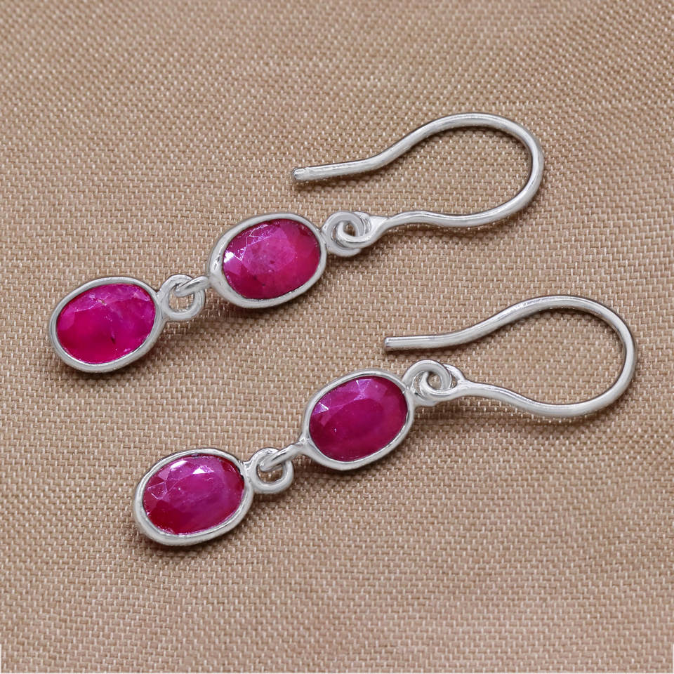 Handmade Natural Ruby Gemstone Earrings In 925 Silver