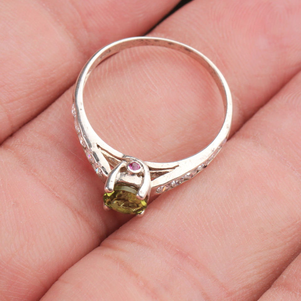 925 Sterling Silver Peridot & Cz Gemstone Wedding Ring