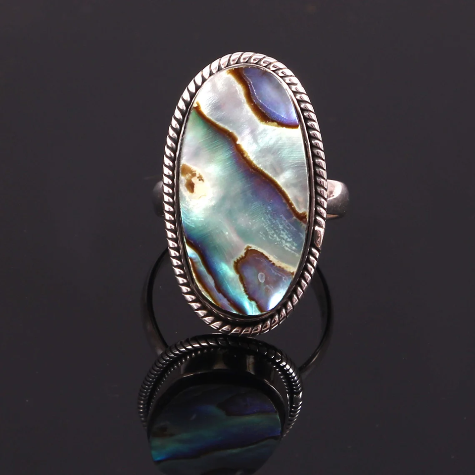 Handmade 925 Sterling Silver Abalone Shell Ring Classic Gemstone Wedding Ring with Bezel Setting Custom Promise Jewelry