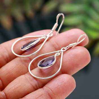 Handmade 925 Sterling Silver African Amethyst Earring Purple Colour Pear Shape Gemstone Bezel Jewelry