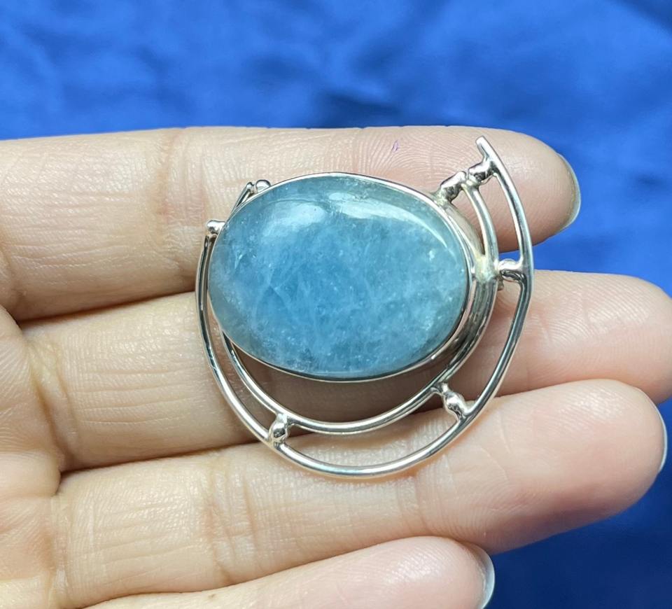 Handmade 925 Sterling Silver Aquamarine Brooch Pin for Men and Women's Weddings and Parties
