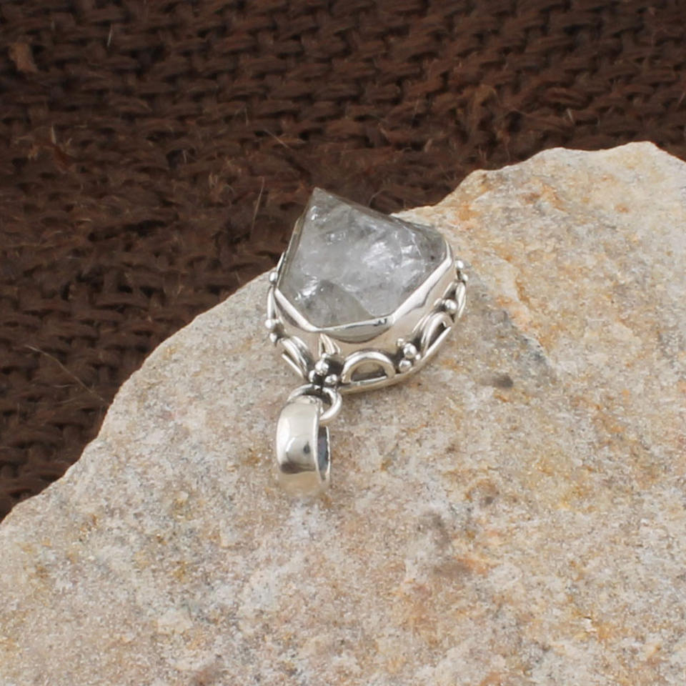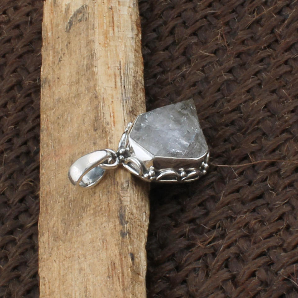 Handmade 925 Sterling Silver Aquamarine Pendant Natural Gemstone Artisan Handcrafted Dotted Border Necklace Charm Jewelry