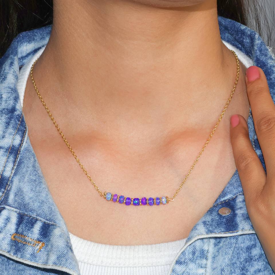 Handmade 925 Sterling Silver Beads Necklace for Women Natural Lavender Opal Bar Chain Wedding Gift Jewelry Size 16 Inches
