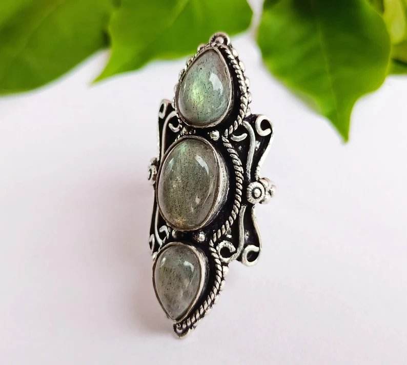 Handmade 925 Sterling Silver Bezel Setting Signet Ring Natural Blue Labradorite Oval Shape Mens Women's Gemstone Ring Wholesale