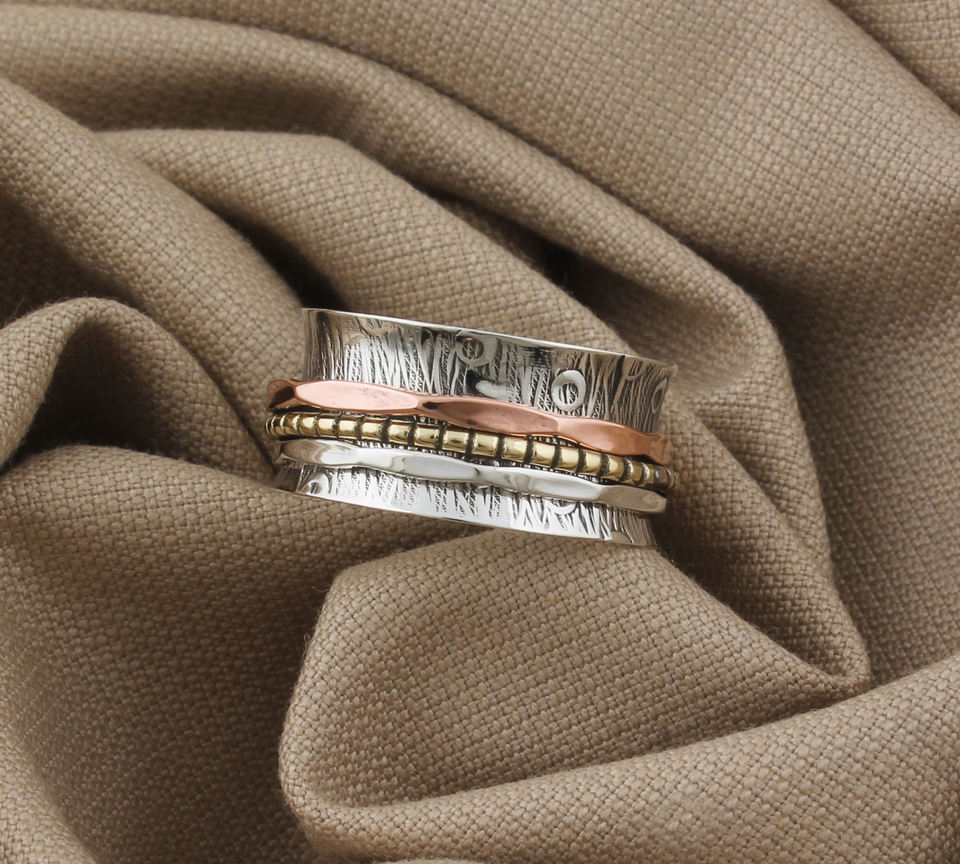 Handmade 925 Sterling Silver Turquoise Bezel Setting Meditation Worry Ring Anxiety Boho Style Artisan Wedding Jewelry Wholesale