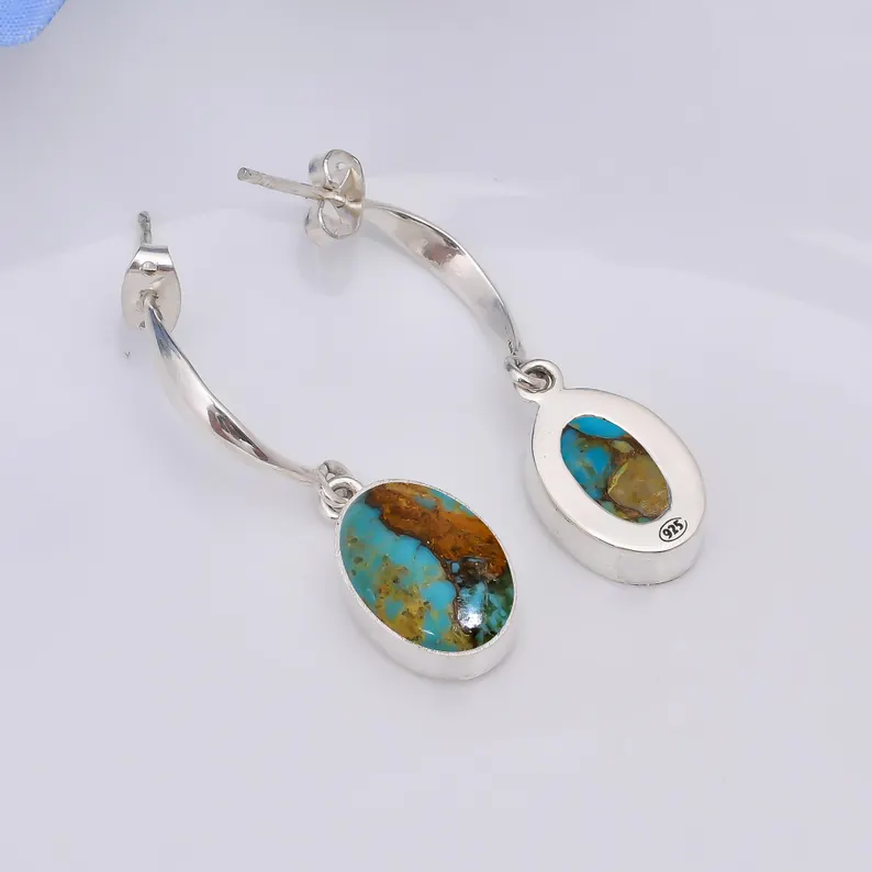 Handmade 925 Sterling Silver Charm Earrings AAA Grade Nickel-Free Women's Turquoise Gemstone Parties Christian Ceremonies