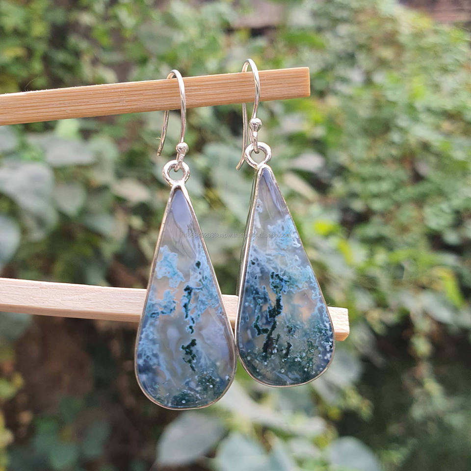 Product Name:Natural Moss Agate 925 Sterling Silver Dangle Drop Earrings