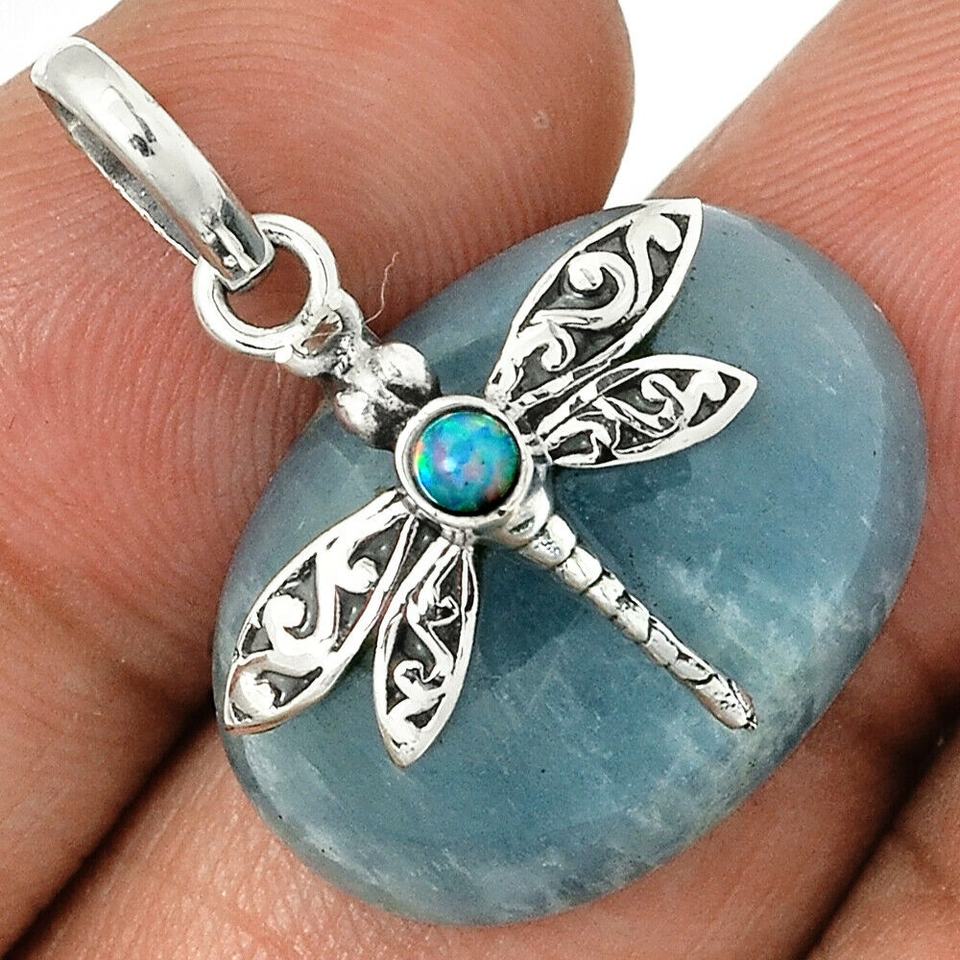 Handmade 925 Sterling Silver Dragonfly Pendant Aquamarine and Fire Opal Gemstone Pendant For Wholesale Supplier OEM ODM Jewelry