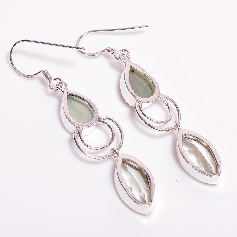 Handmade 925 Sterling Silver Drop Earrings High Quality Fine Dangle Jewelry with Mixed Gemstone Classic Design