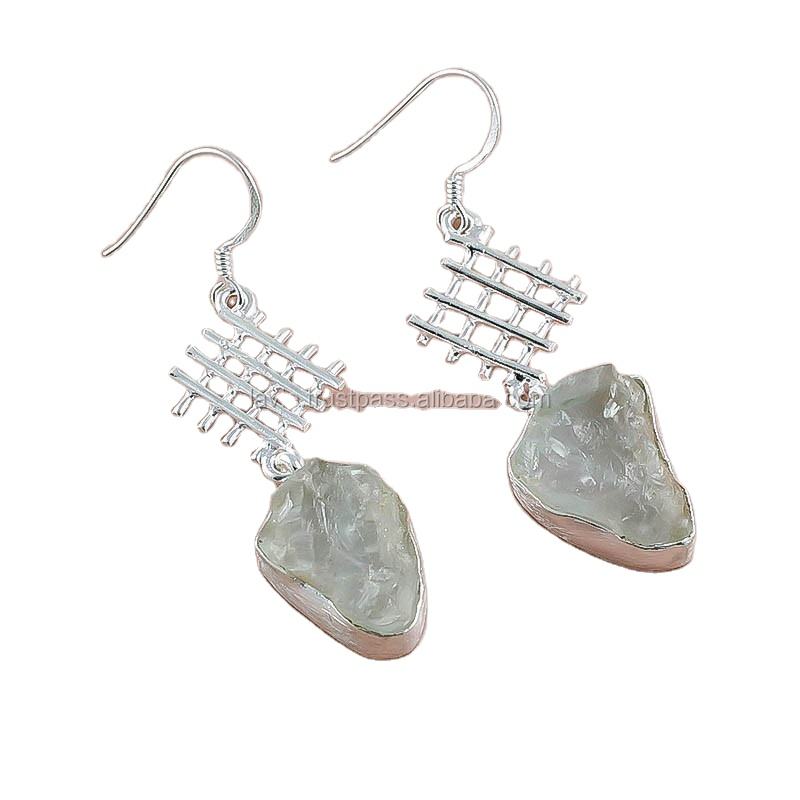 Handmade 925 Sterling Silver Drop Earrings Natural Aquamarine Rough Gemstone Custom Jewelry for Party Occasions