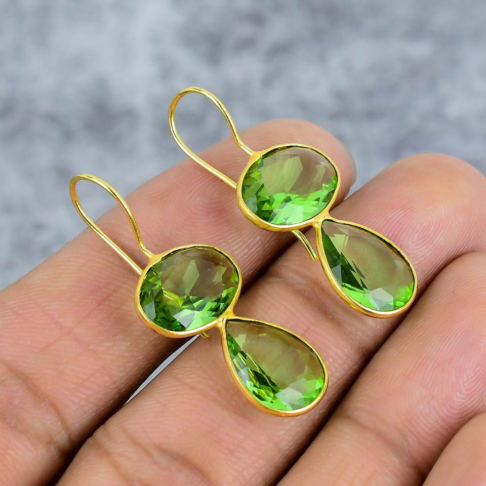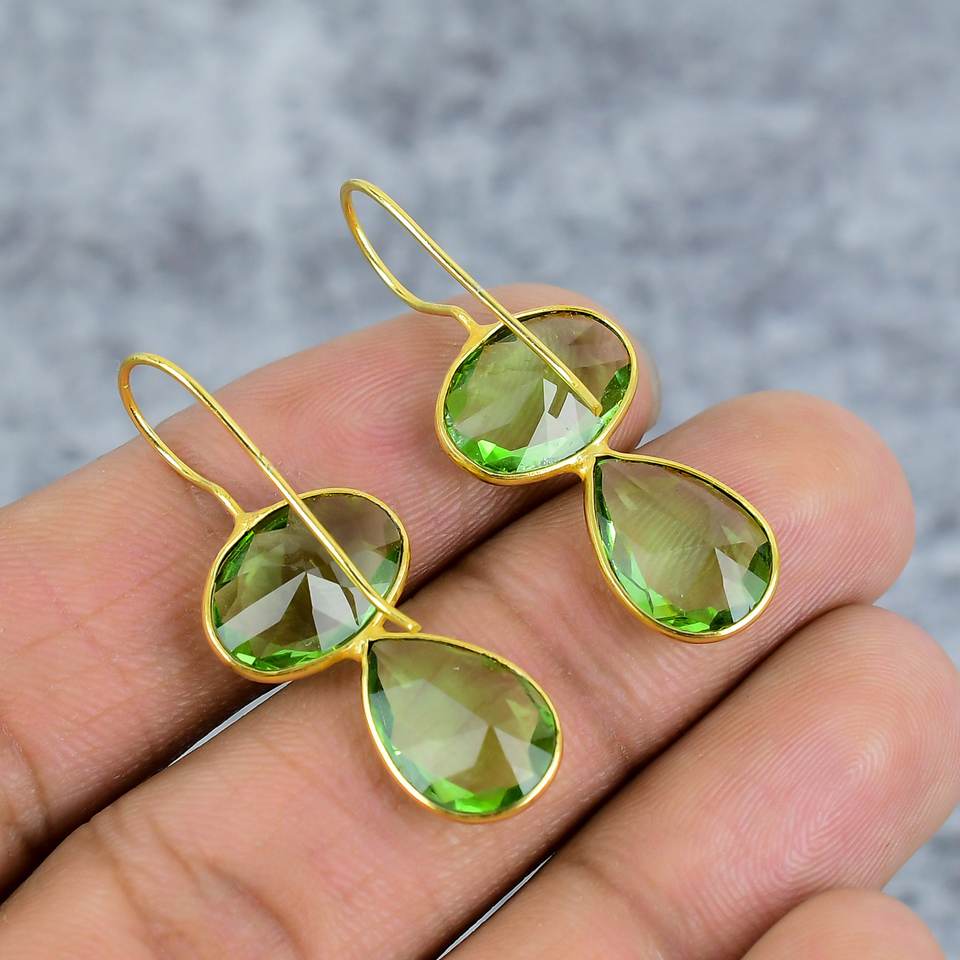 Handmade 925 Sterling Silver Drop Peridot Quartz Gold Plated Oval Pear Gemstone Stylish Party Design Trendy Women's Gift