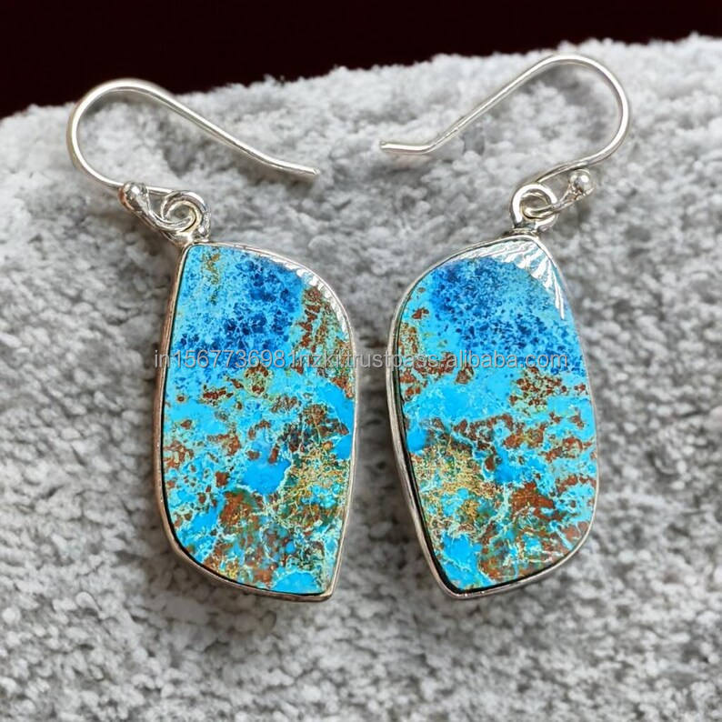 Handmade 925 Sterling Silver Earring, Handmade Blue Shattuckite Jewelry, Cushion Shape, Christmas Gift