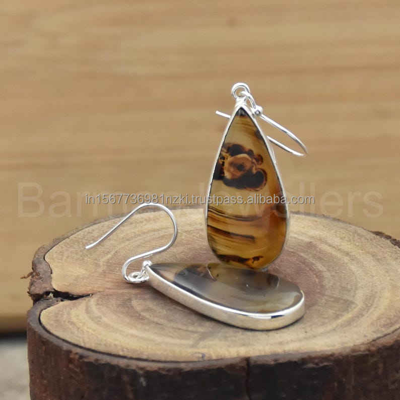 Handmade 925 Sterling Silver Earrings Montana Agate Gemstone Earrings Handmade Jewelry Montana Agate Jewelry Christmas Gifts