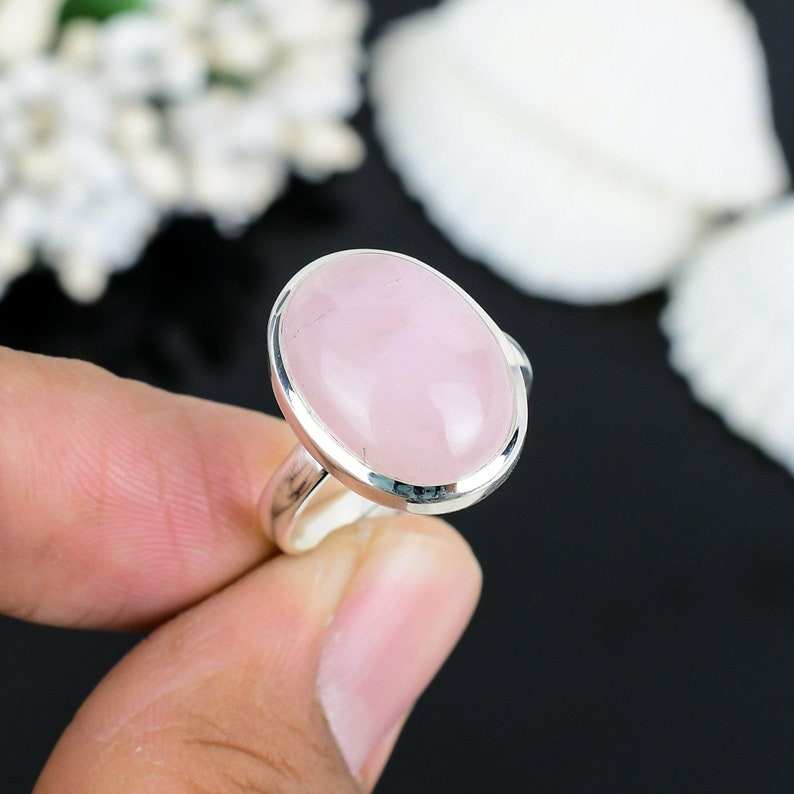 Handmade 925 Sterling Silver Eternity Vermeil Ring Unique Classic Design with Natural Rose Quartz Gemstone Bezel Setting