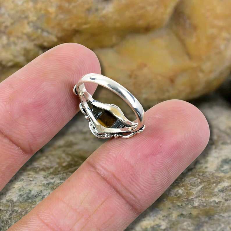 Handmade 925 Sterling Silver Eternity Vermeil Ring Unique Classic Design with Natural Tiger Eye Gemstone Bezel Setting