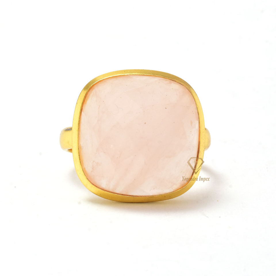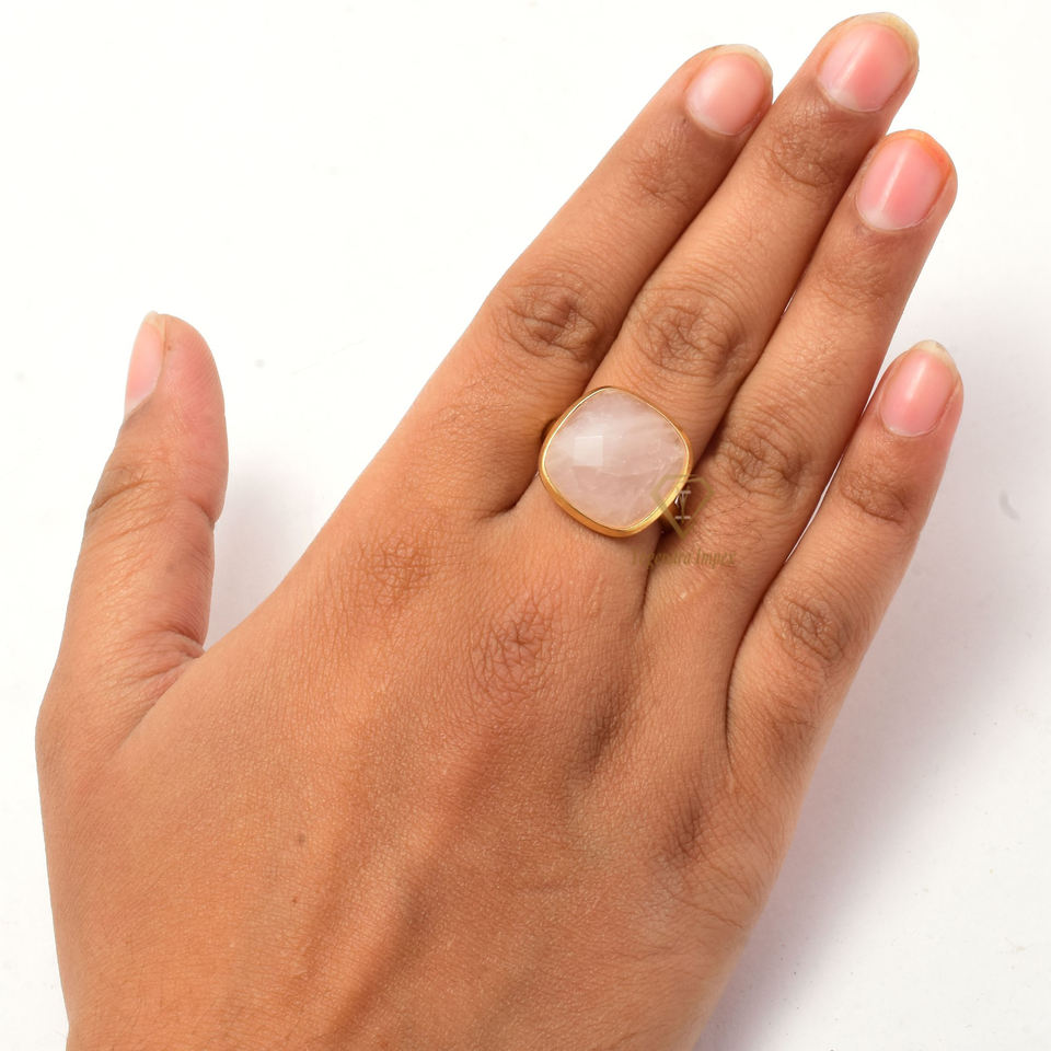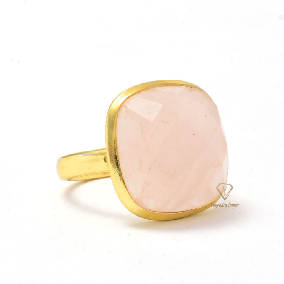 Handmade 925 Sterling Silver Fashion Ring Natural Rose Quartz Gemstone Cushion Shaped Pink Gemstone Stylish Accessory