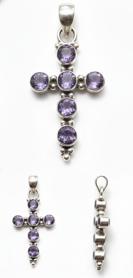 Handmade 925 Sterling Silver Fine Jewelry Pendant with Amethyst Gemstone Cross Gift for Women