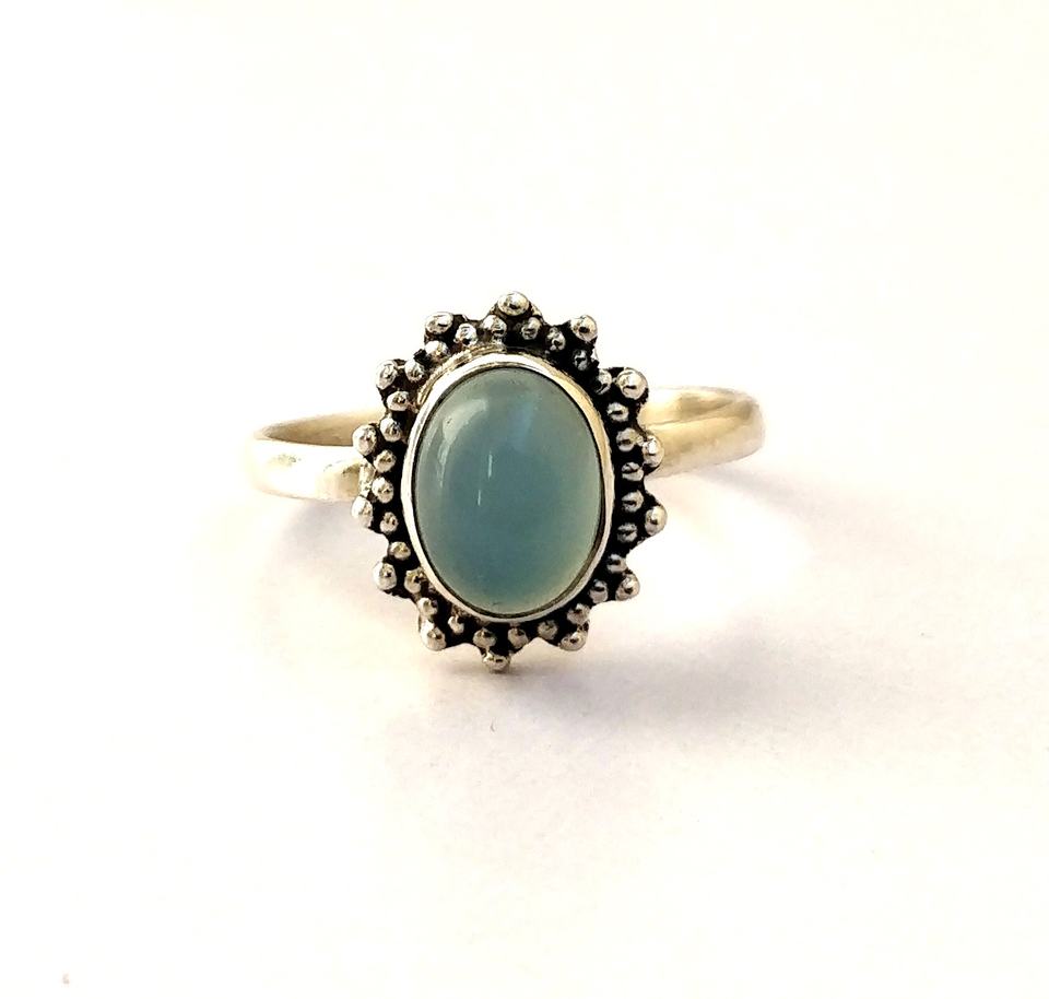 Handmade 925 Sterling Silver Fine Ring Beautiful Indian Fashion Jewelry for Women Girls Featuring Chalcedony Diamond-Wholesale