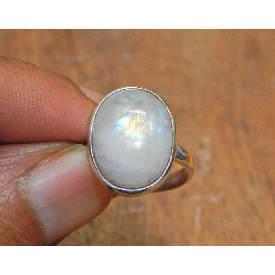 Handmade 925 Sterling Silver Fine Gemstone Ring Natural Moonstone Cabochon Adjustable Gift for Her R0105-GS Jewelry