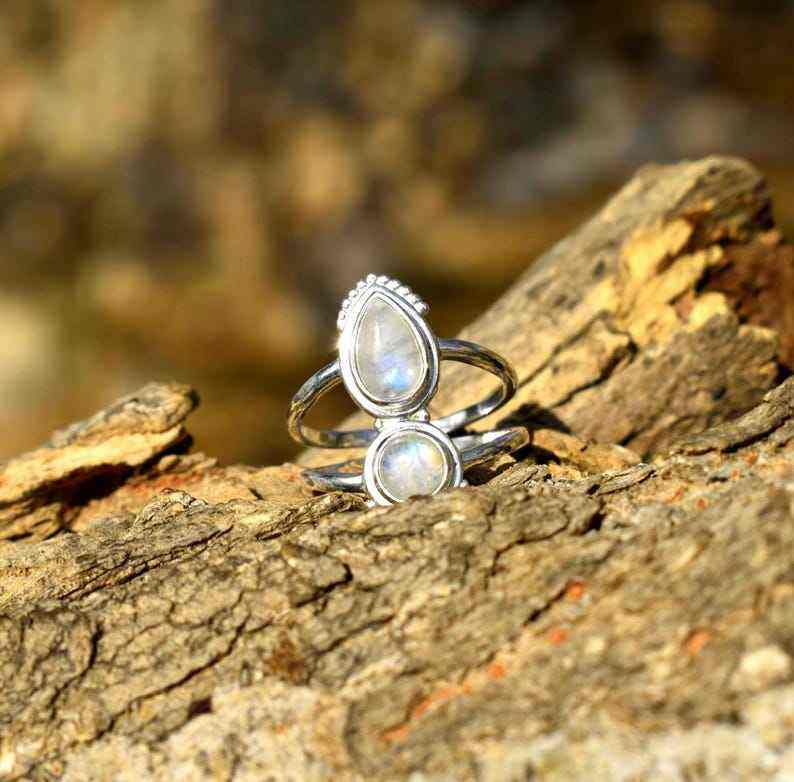 Handmade 925 Sterling Silver Flashy Moonstone Ring Unique Design Natural Gemstone Gift For Her