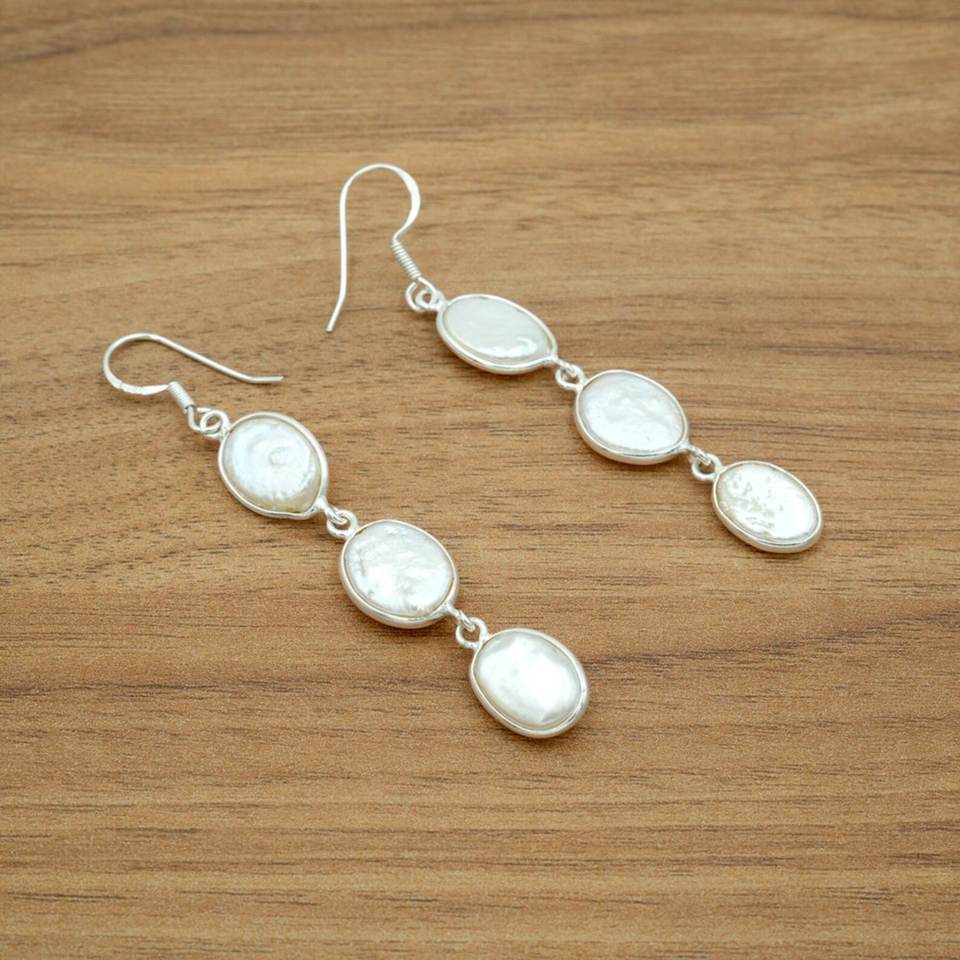 Handmade 925 Sterling Silver Freshwater Pearl Earring for Women Unique Bezel Design Handmade Freshwater Pearl Bezel Earring