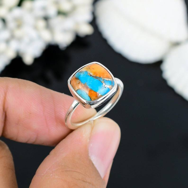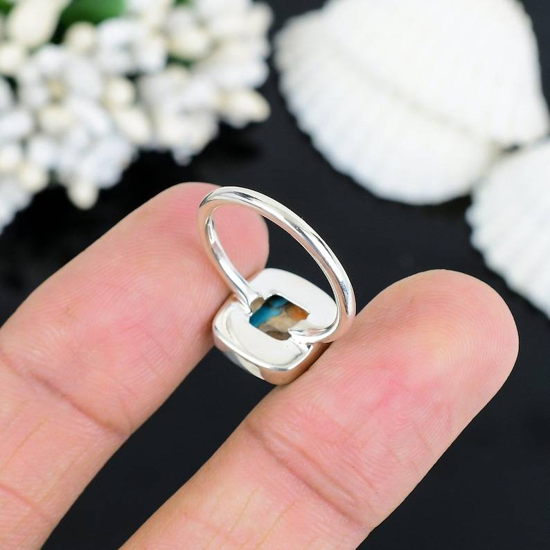 Handmade 925 Sterling Silver Minimalist Oyster Turquoise Ring Kingman Turquoise Promise Anniversary Wedding Gift Natural Stone