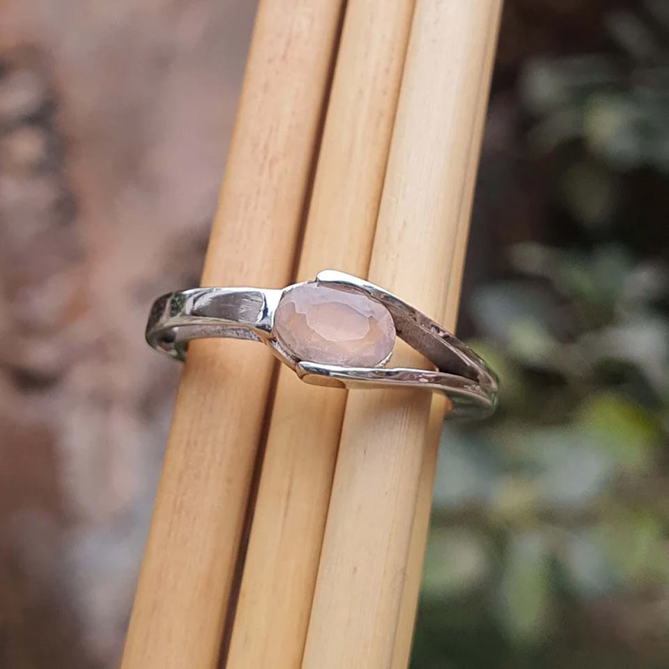 Handmade 925 Sterling Silver Natural Rose quartz Gem Ring 8X10mm Oval Shape Bezel Set For Fashion Jewelry Set Anniversary Gift