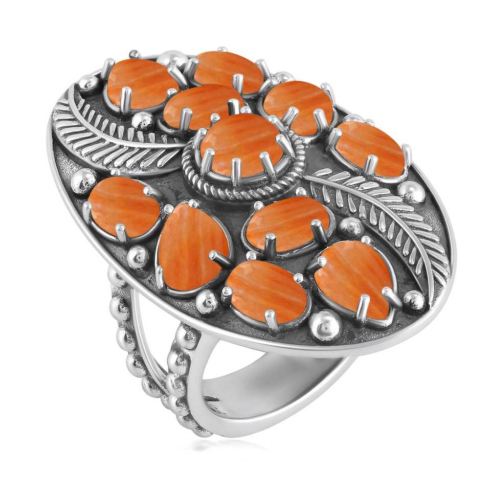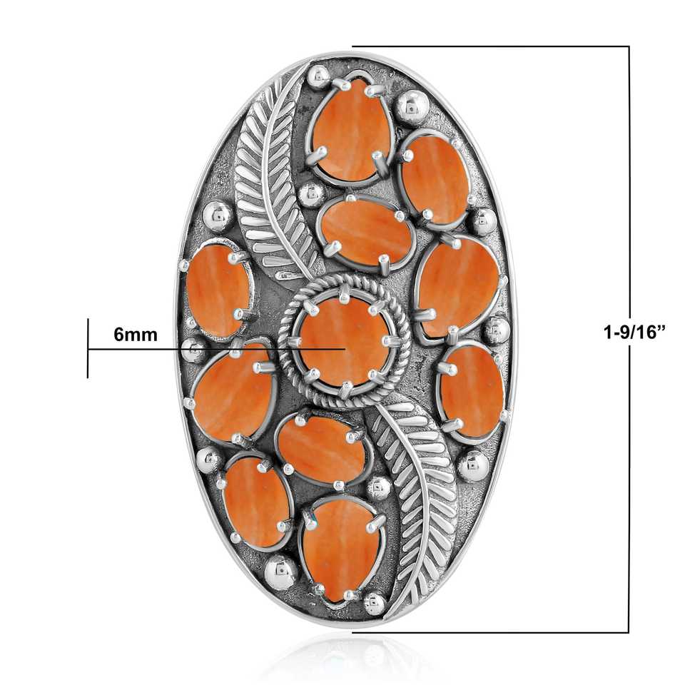 Handmade 925 Sterling Silver Orange Spiny Oyster Leaf Ring Beautiful Gemstone Ring with Natural Stone Main Stone