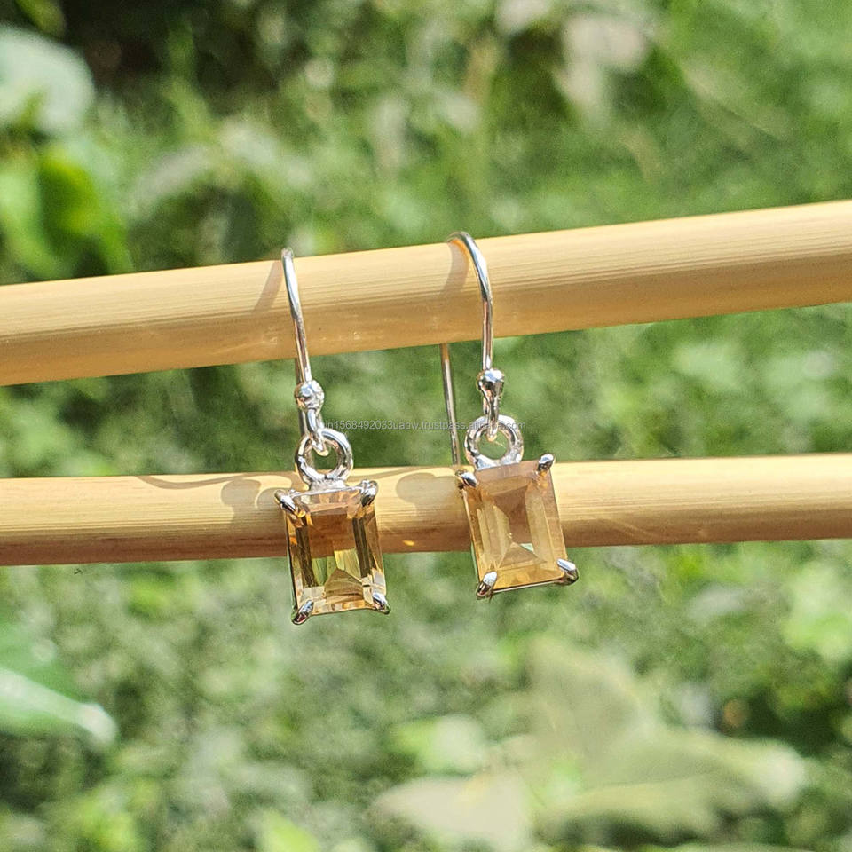 Product Name:Natural Citrine 925 Silver Earrings for Women