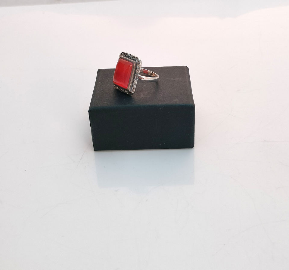 Handmade 925 Sterling Silver Ring Carnelian Gemstone Octagon Shape Ring for Men